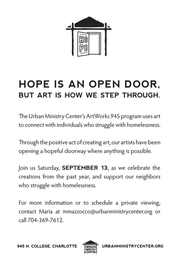 It is always a pleasure to assist our artist-neighbors at Urban Ministry Center's Artworks945 program with creating promotional materials for their annual fall art show.