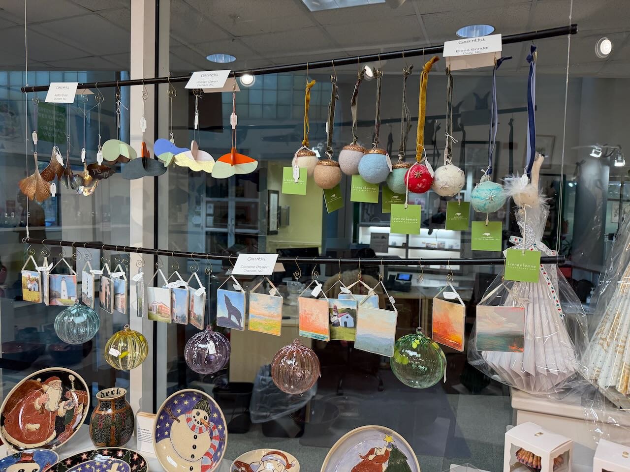 My “Tiny Skies” ornaments were selected for inclusion in GreenHill Center for NC Art’s Annual Holiday Ornament Showcase, starting with a reception on Nov 19. 2025 and continuing through the end of the year. GreenHill’s beautiful galleries and beautiful museum gift shop highlight the work of North Carolina artists.